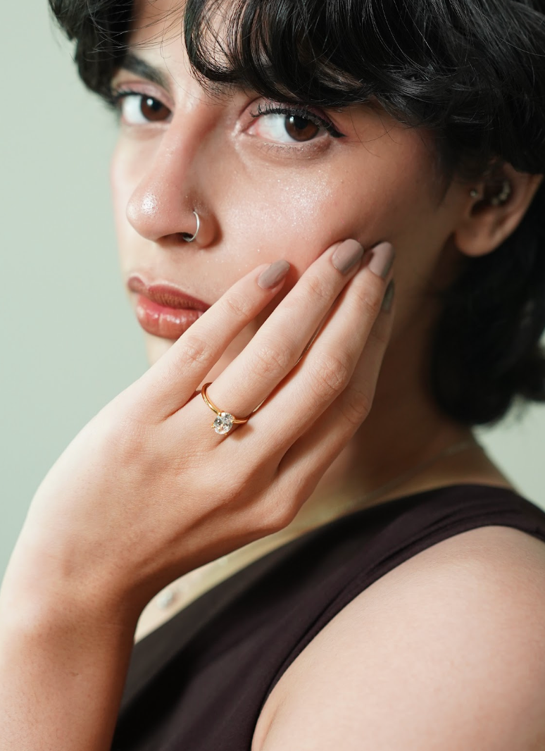 The Lumina Oval (2 carat) ring radiates refined simplicity and timeless charm. Handcrafted in sterling silver with your choice of luminous gold plating or sophisticated platinum plating, it features a 5AA-grade oval zircon—expertly cut to mirror the brilliance and clarity of natural diamonds. Its graceful 2-carat stone offers an understated sparkle, perfect for everyday elegance or minimalist sophistication.