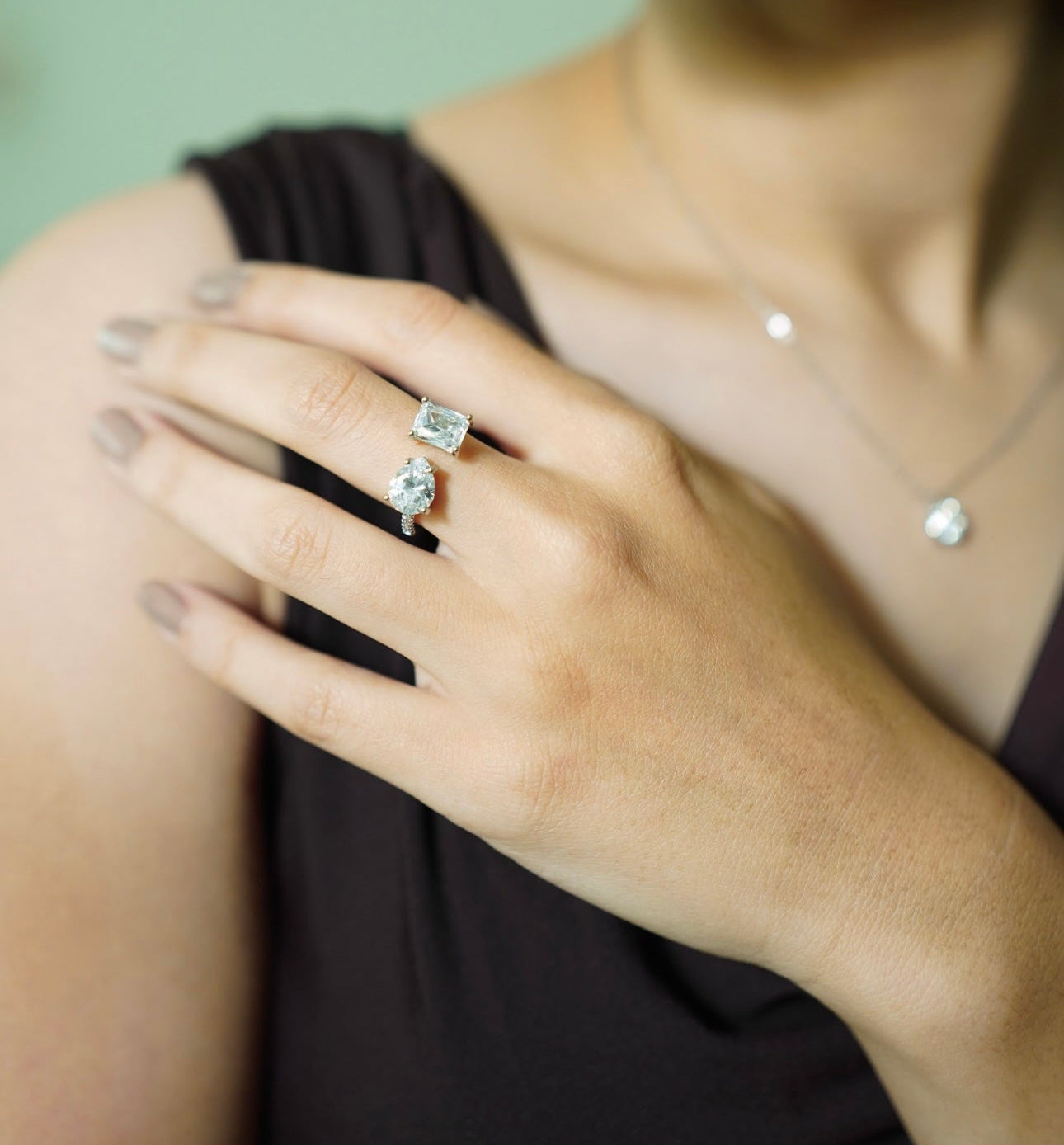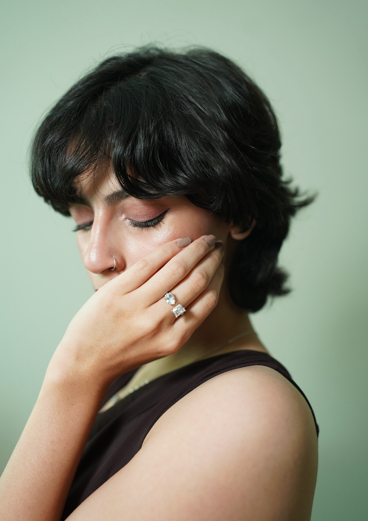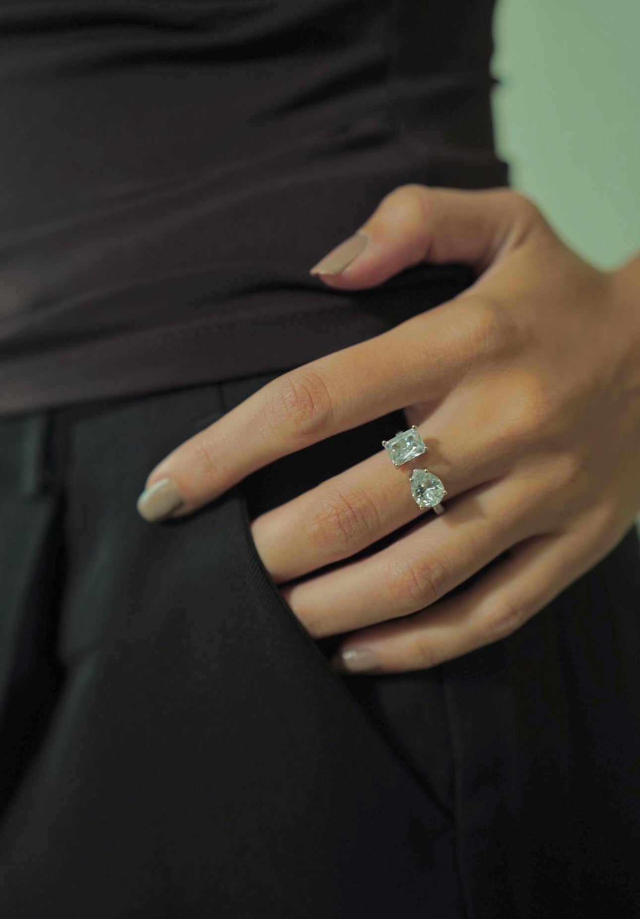Inspired by timeless romance, the Toi et Moi ring beautifully captures the union of two souls with its twin stones set in harmony. Handcrafted in high-quality waterproof 925 sterling silver, this piece offers a brilliant, lasting shine and a refined silhouette that complements both modern and classic aesthetics.